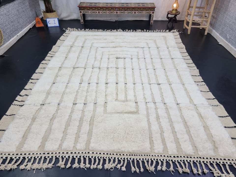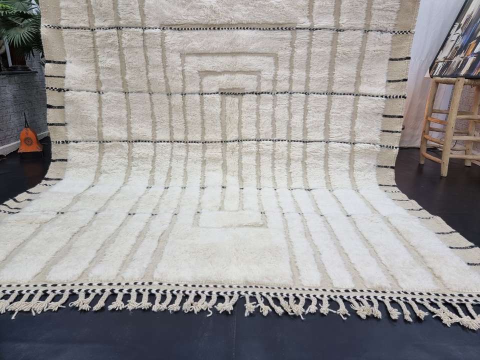 Tapis marocain blanc Shag Beni Ourain tapis en laine tufté à la main rayé zone sur mesure salon tapis berbère authentique tapis