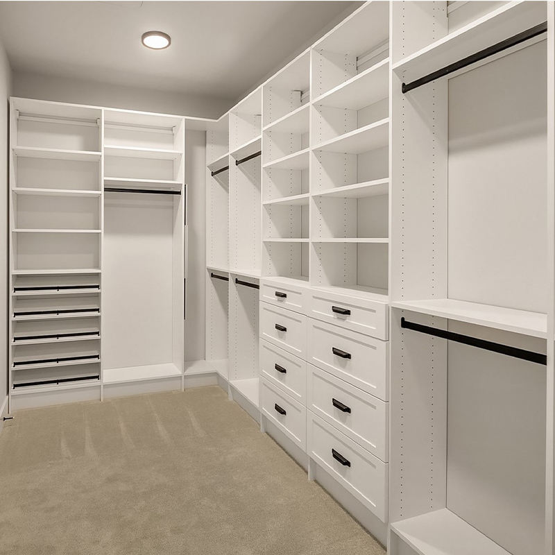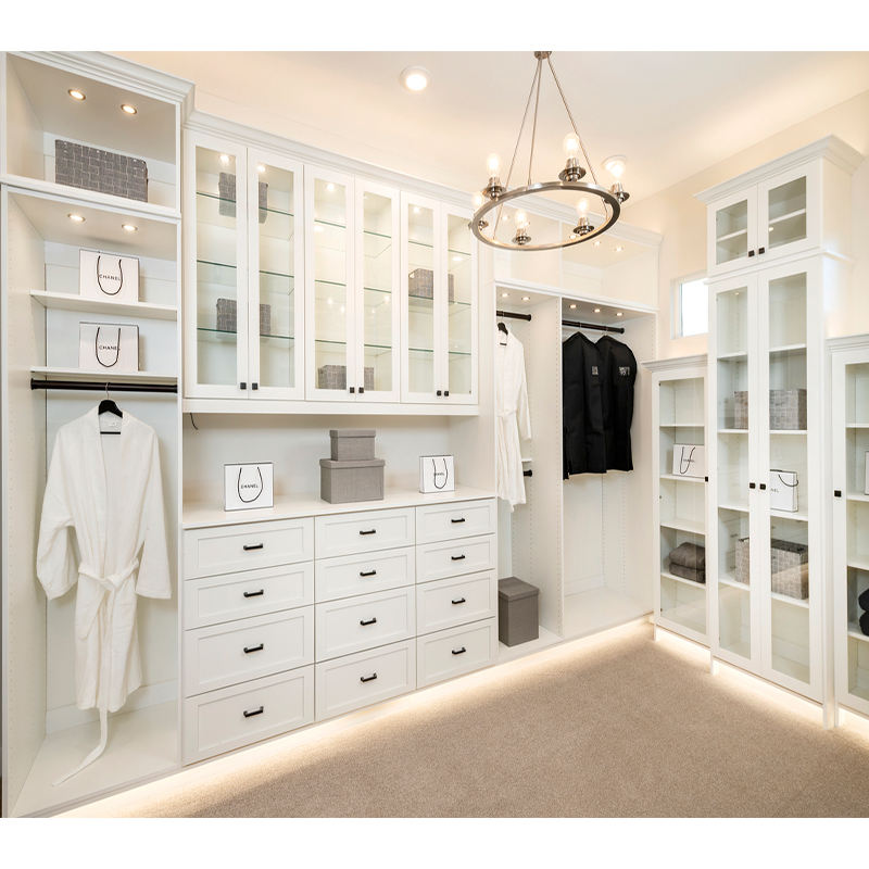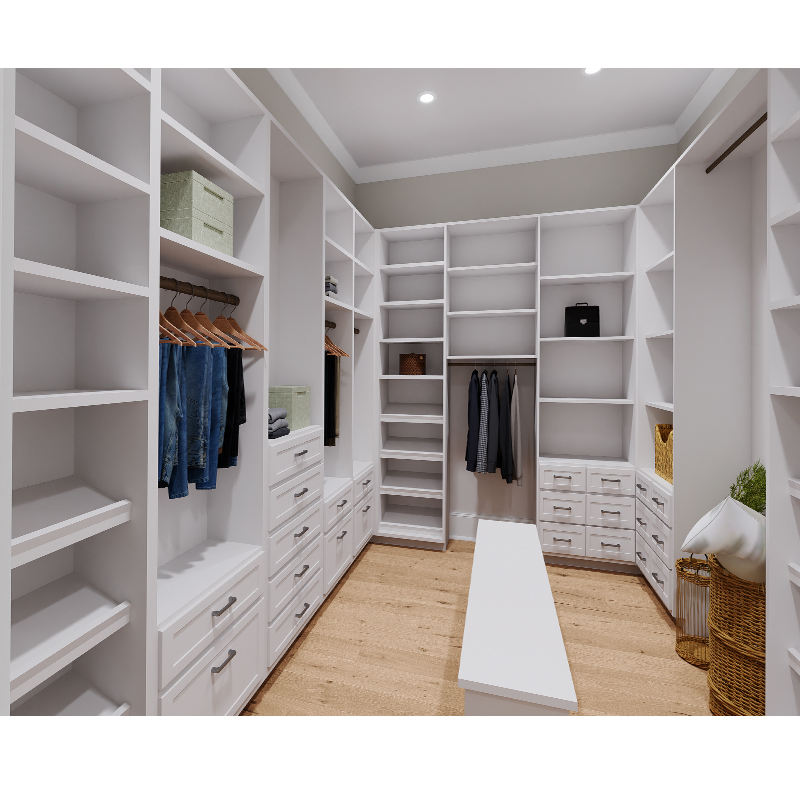 Shaker blanc personnalisé walk in closet design de garde-robe walk in closet système avec tiroirs