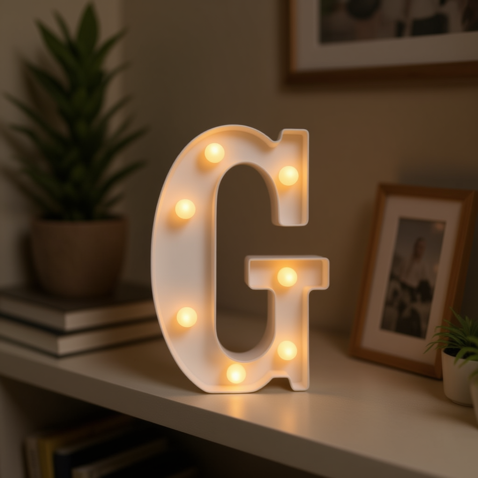 Ornement mural en forme de lettre G en coquille blanche, 21 cm, lumière chaude, décoration intérieure