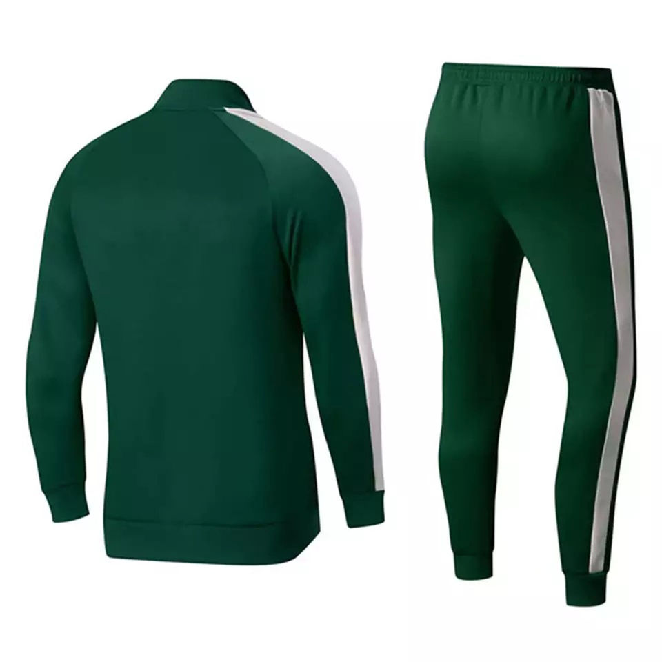Survêtement de sport vert à rayures latérales blanches pour hommes, vêtements d'entraînement, survêtement à col montant de haute qualité pour hommes, vente à chaud