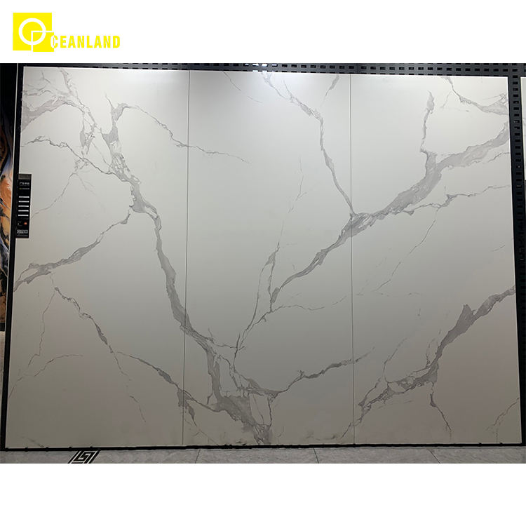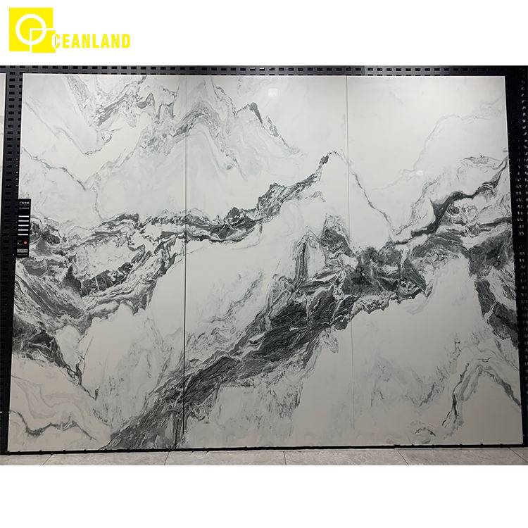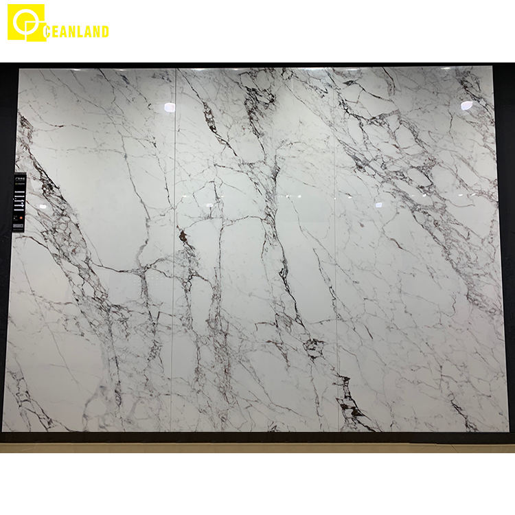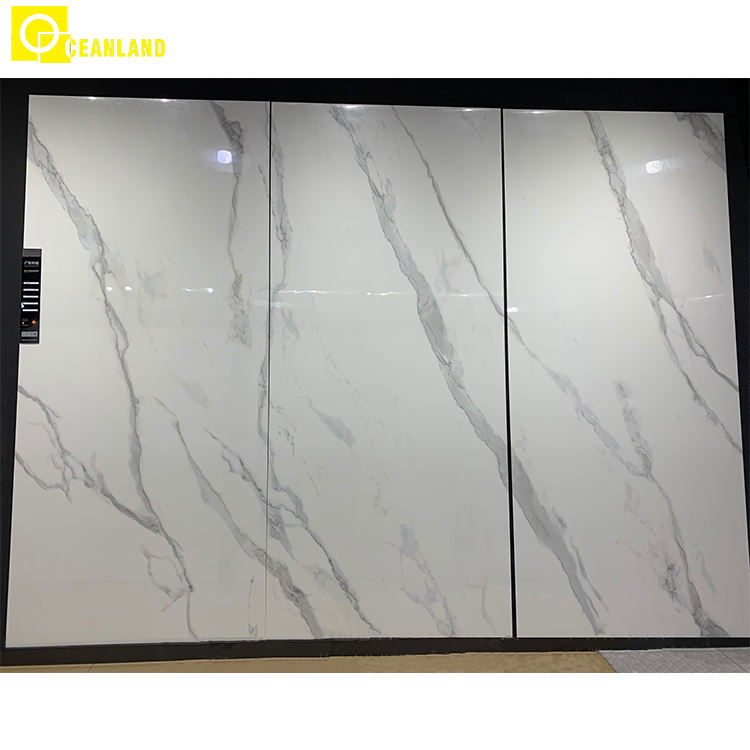 Nom du produit:Salle de mur de marbre en céramique brillante dalle de porcelaine en pierre frittée