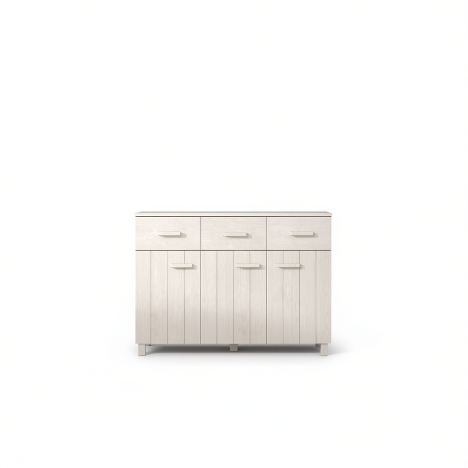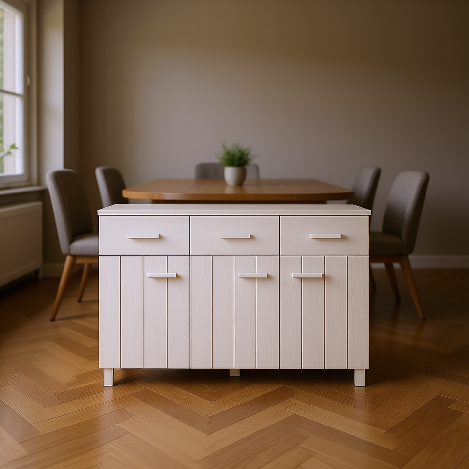 Buffet en pin blanc avec rangement, design moderne pour meubles de salle à manger