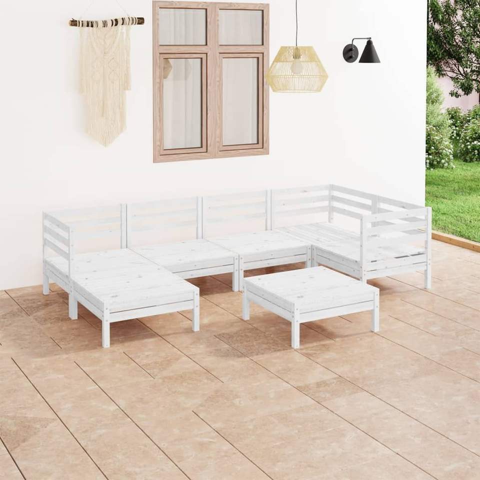 Ensemble de salon de jardin modulaire en pin massif blanc, style rustique moderne, mobilier d'extérieur 6 places