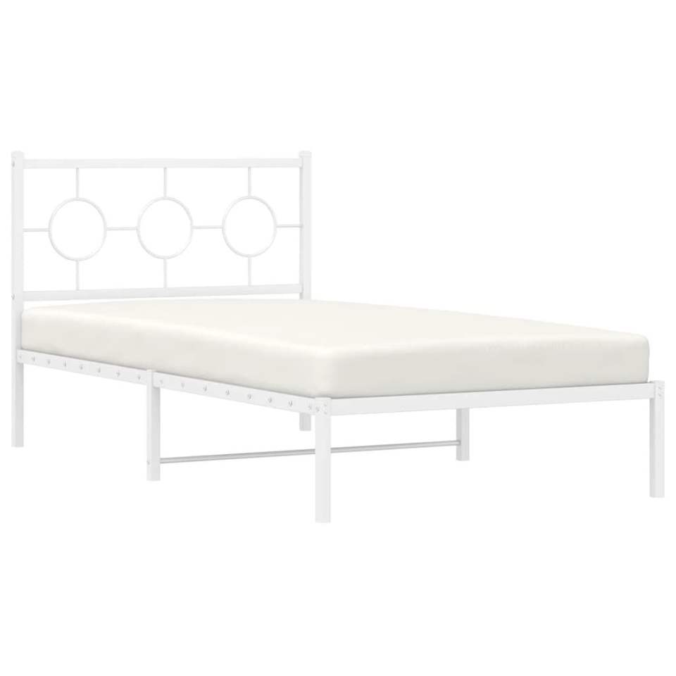 Cadre de lit double en acier blanc, design industriel rectangulaire, lit en métal