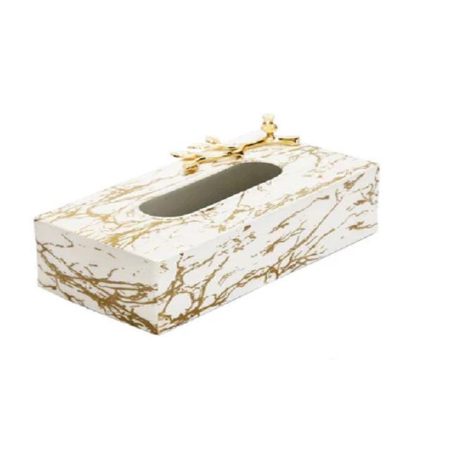 Boîte à mouchoirs blanche avec un superbe design doré Designer fantaisie de luxe Service de décoration unique élégant pour hôtel et fête Boîte à mouchoirs