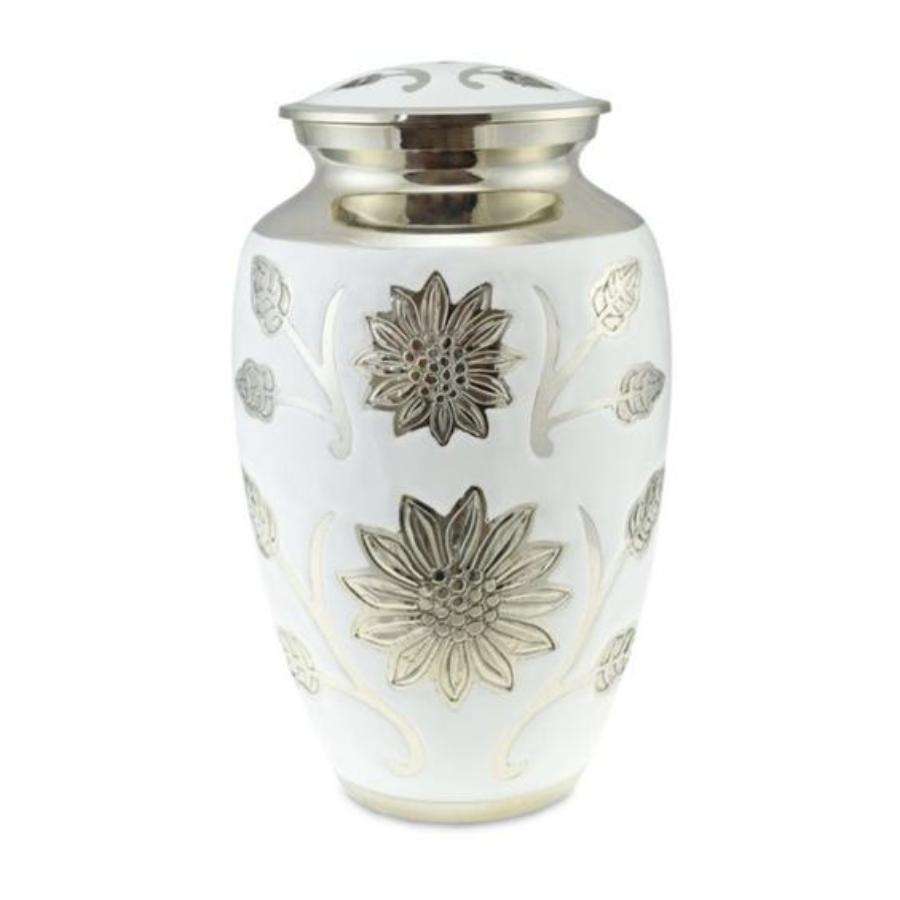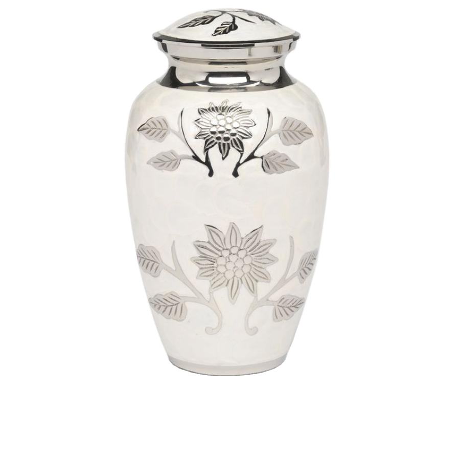 White Turquoise Floral Style Adult Cremation Urn Handicraft Metal Urns For Ashes Cheap Tabletop Centerpiece Funeral Urn Memorial
