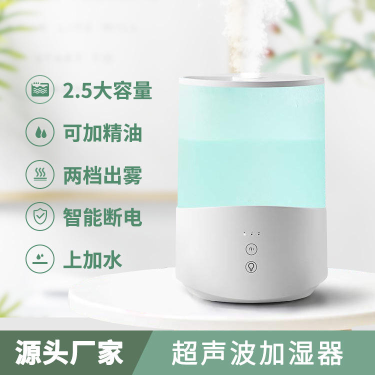 Humidificateur ultrasonique blanc avec lumière pour l'aromathérapie domestique, fonctionnement silencieux à 36 dB, normes américaines et européennes