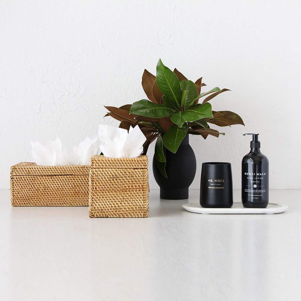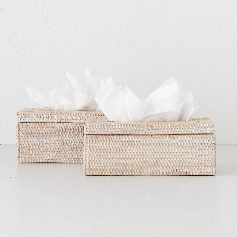 Porte-mouchoirs rectangulaire en bambou blanc délavé de style bohème