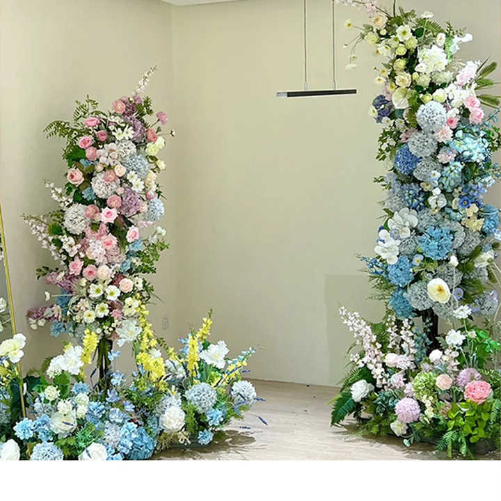 Arche de mariage blanche Fleurs de mariage artificielles vertes pour arche carrée en métal au design élégant