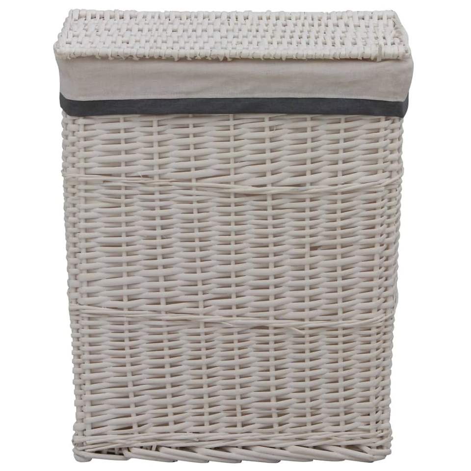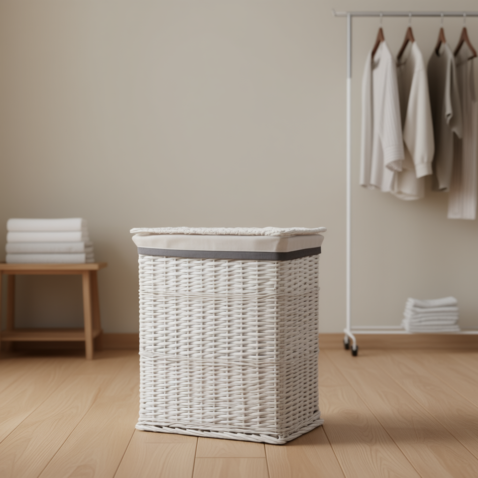 Panier à linge rectangulaire en osier blanc avec doublure en toile, anti-poussière, fait main, style rustique, pour rangement de buanderie