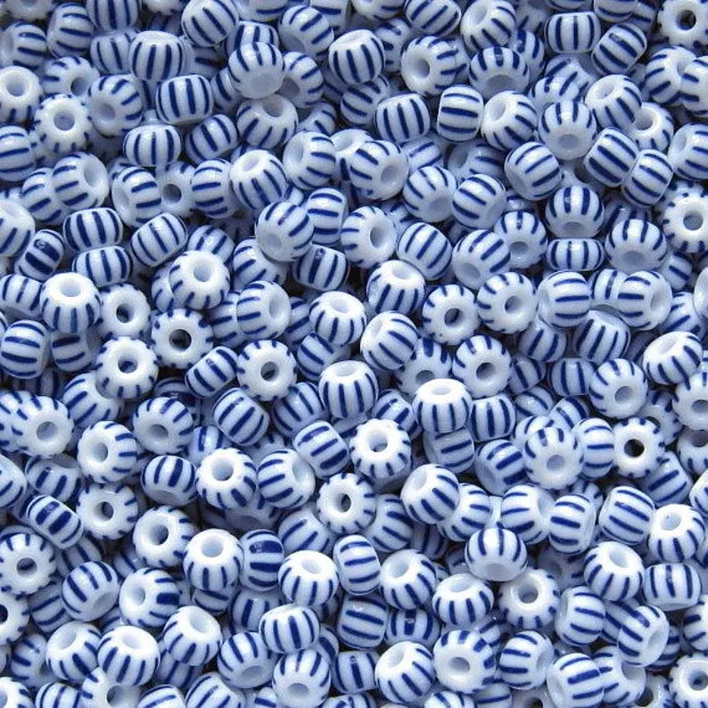 White With 10 Blue Stripes Preciosa Glass Czech Seed Beads 3.8 mm Glass Beads for Jewelry Making