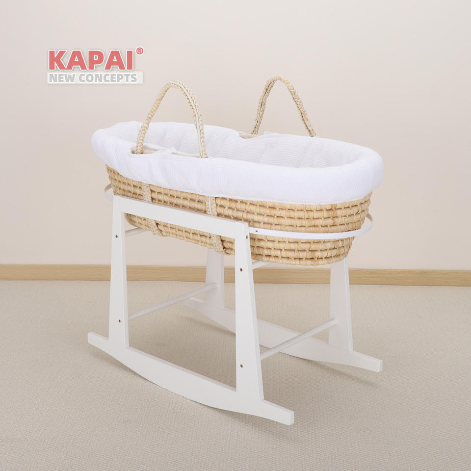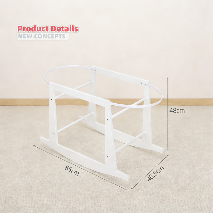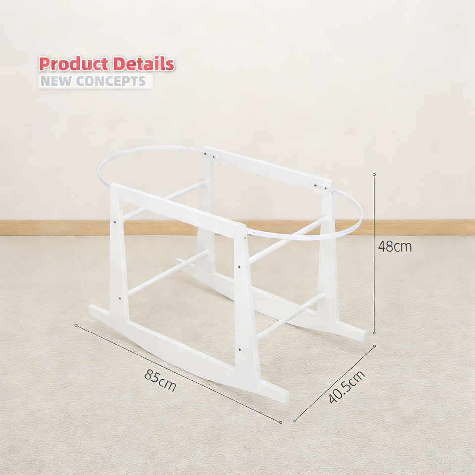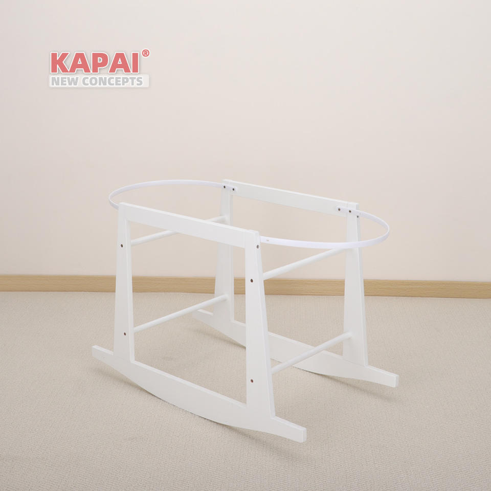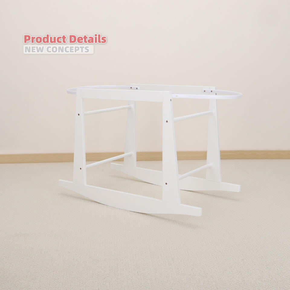 Support de berceau à bascule en bois blanc, cadre compact avec anneau métallique incurvé, base à bascule stable pour berceau de nouveau-né
