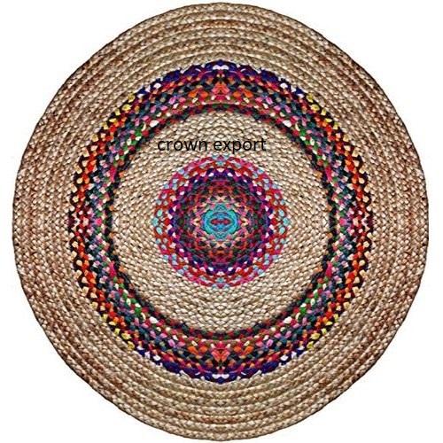White and Blue Natural Jute Rugs Round Shape Carpet for Home Office or Prayer Room Highly Demanded at Low Price