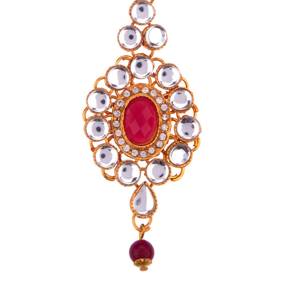 Diamant de couleur blanc et rouge Mangtika de conception indienne traditionnelle pour les femmes et les filles portent en toute occasion