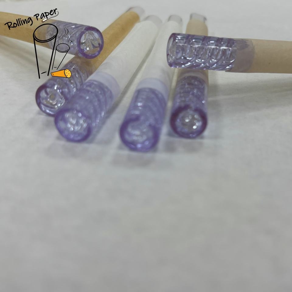 White transparent glass mouth smoking paper tube in stock customized purple threaded glass mouth smoking paper roll