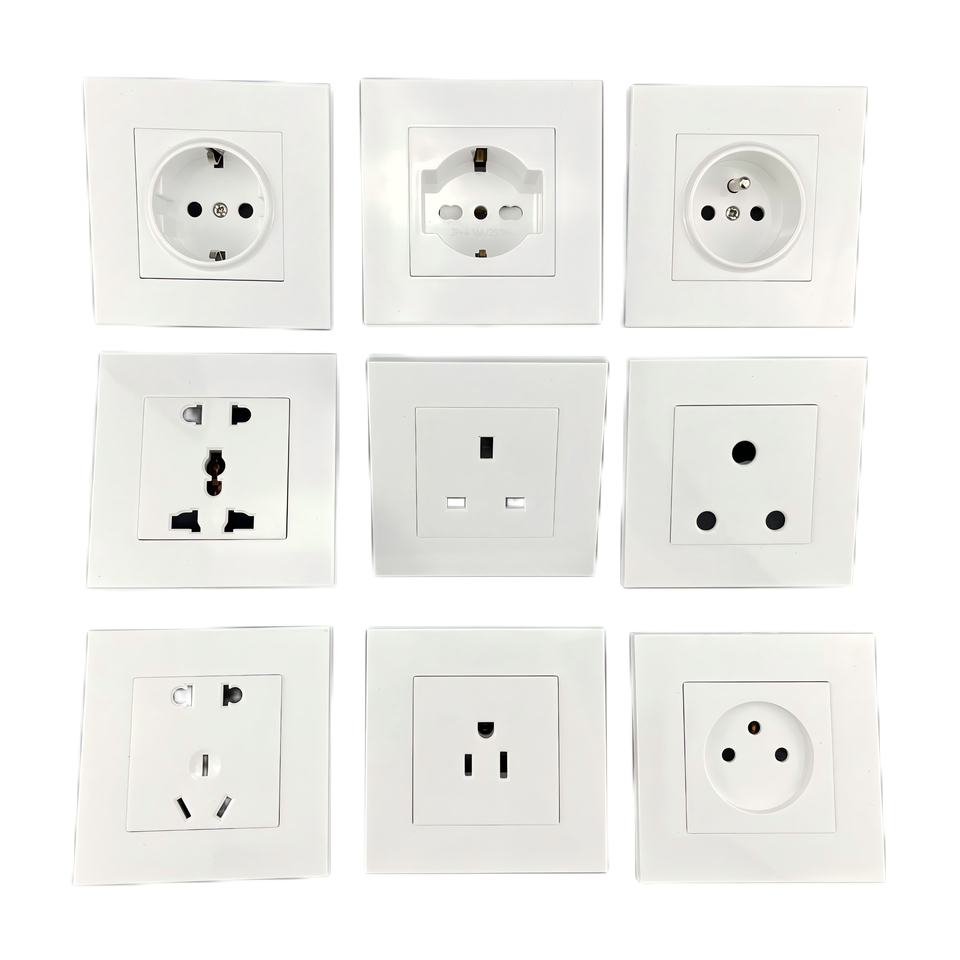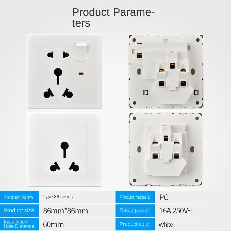 White Wall Multi-pin Socket Switch Dual Global Universal Hidden Design 240V 20A Wall Socket with Electrical Switch