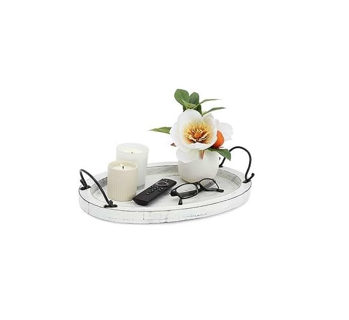 Plateau petit-déjeuner en bois blanchi à la chaux avec touche artisanale et design de ferme parfait pour les week-ends agréables ou les invités