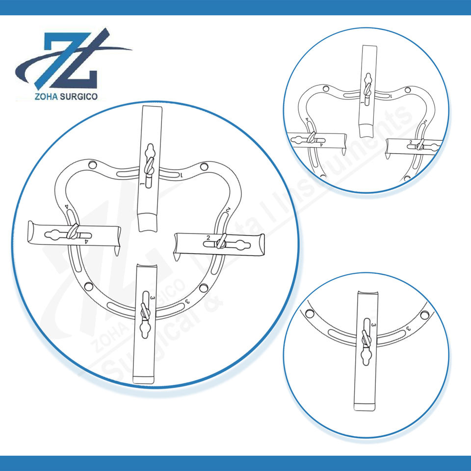 Rétracteur manuel en acier inoxydable Whitlow, cadre de 225 mm, point le plus large, rétraction vaginale, presque 360°, ensemble d'instruments chirurgicaux CE