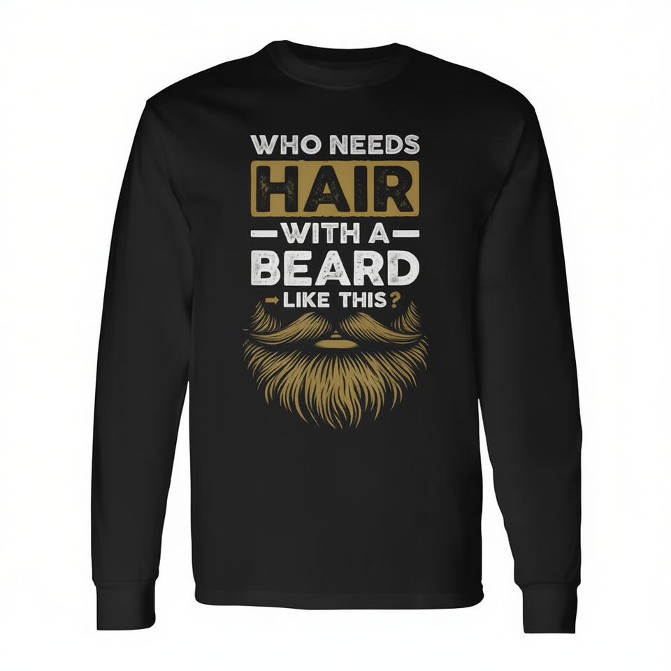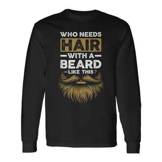 Qui a besoin de cheveux avec une barbe pareille ? T-shirt à manches longues pour hommes chauves et barbus