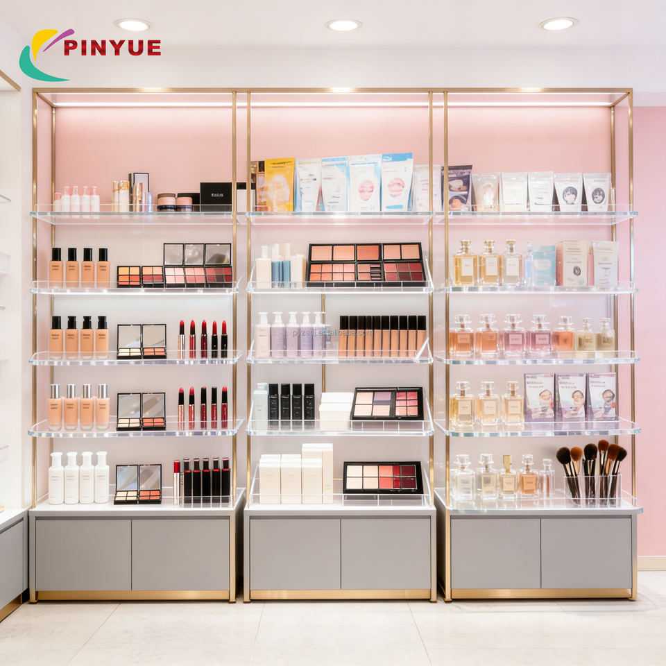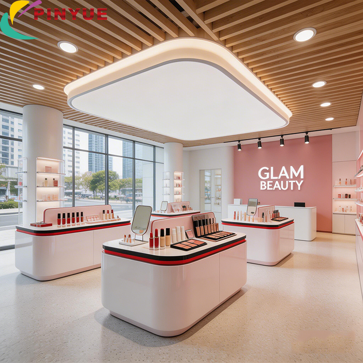 Meuble de Présentation Cosmétique Modulable pour Salon de Beauté et Soins de la Peau, Conception Intérieure Personnalisée pour Toute la Maison, avec Îlot Testeur et Rangement