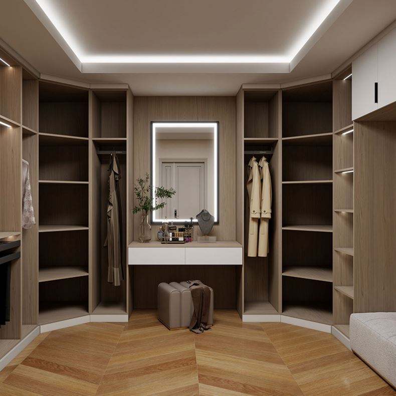 Armoire ouverte en forme de U, design personnalisé pour toute la maison, style minimaliste et luxueux, en MDF