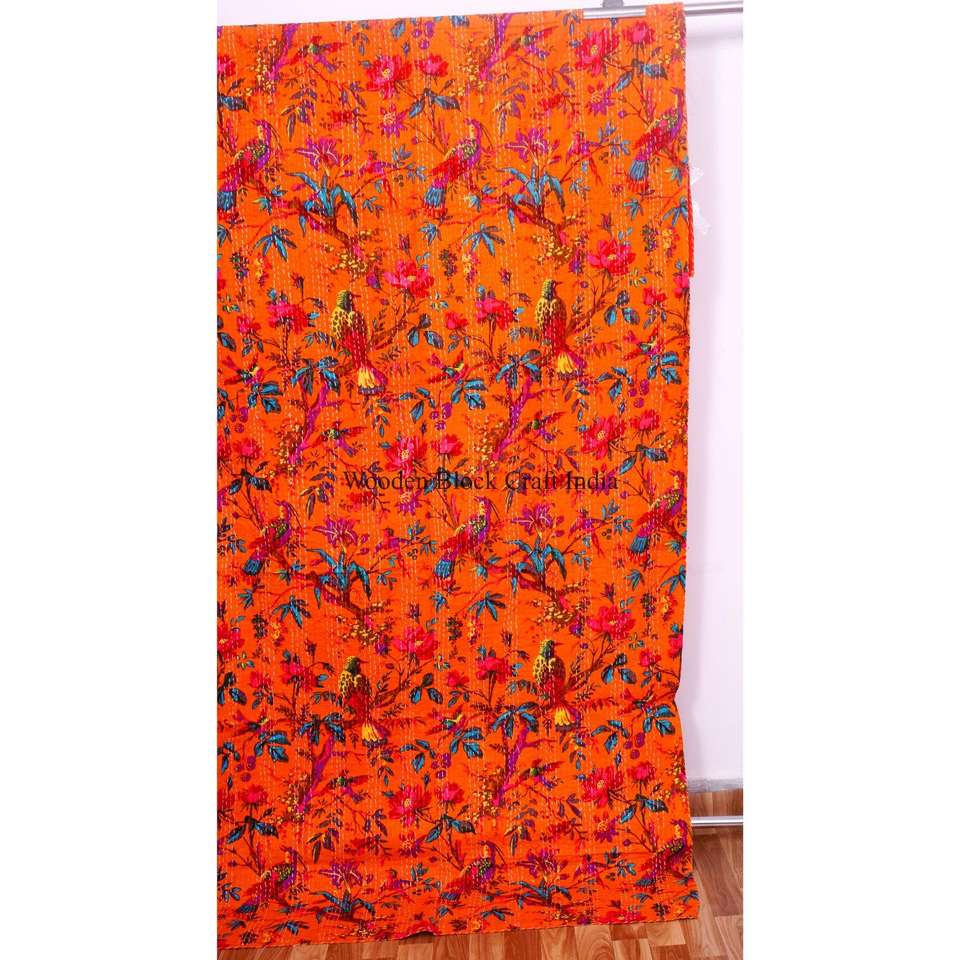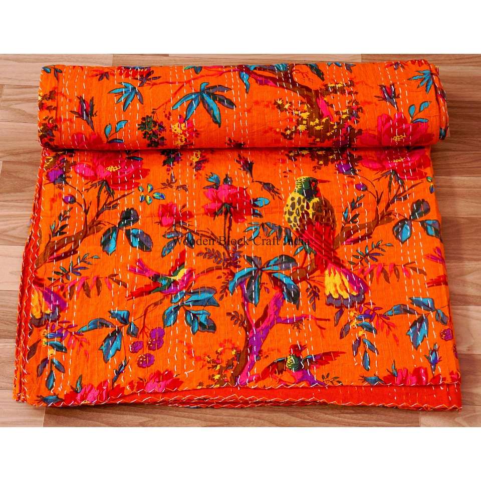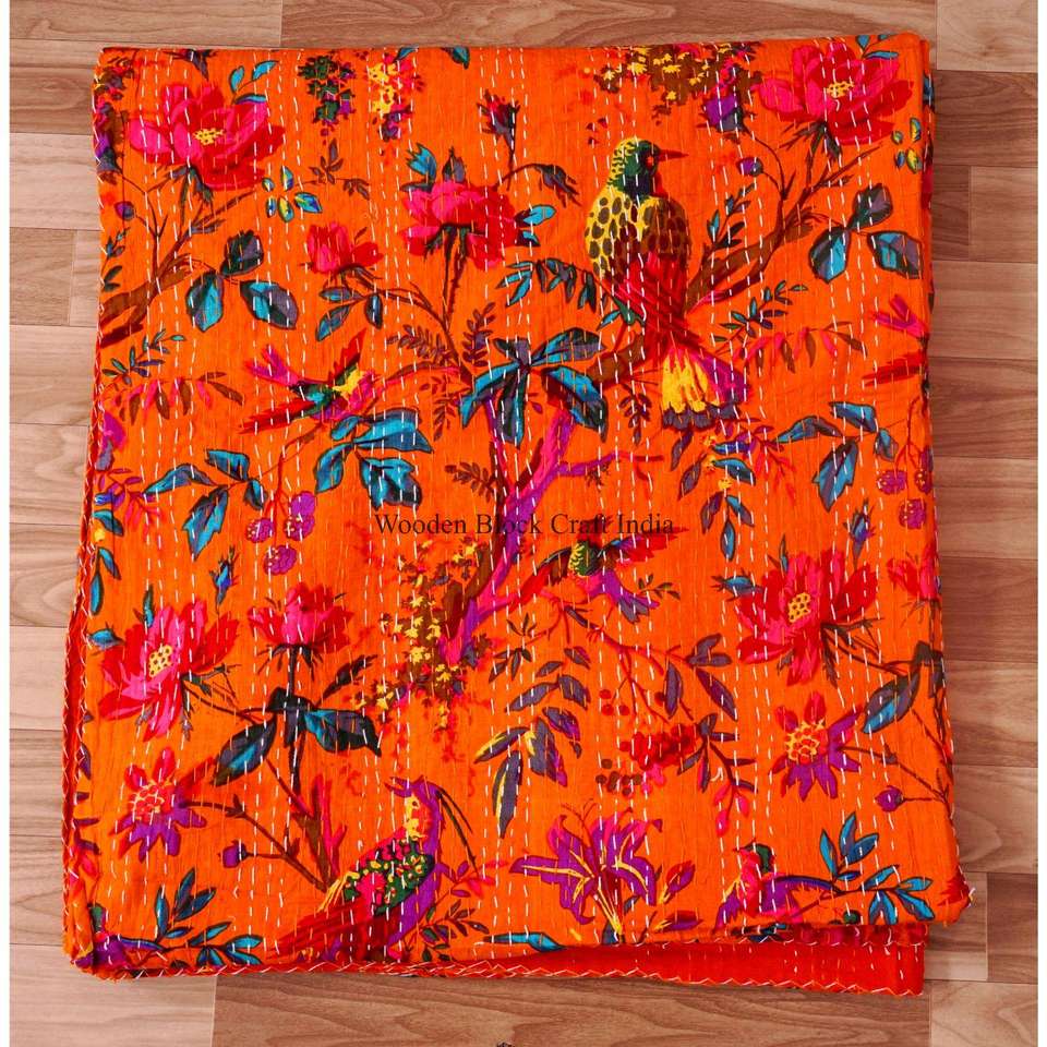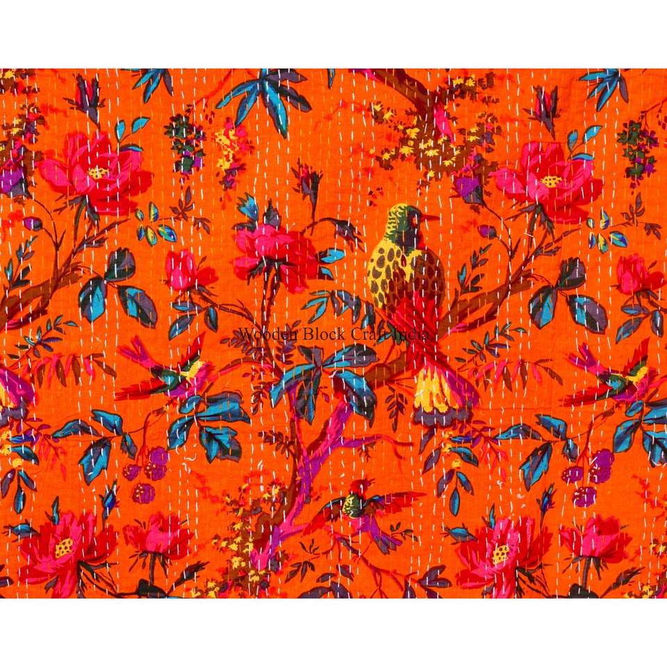 Couverture longue en coton réversible, entièrement faite à la main, style Kantha vintage, écologique, imprimée de motifs floraux, pour la maison