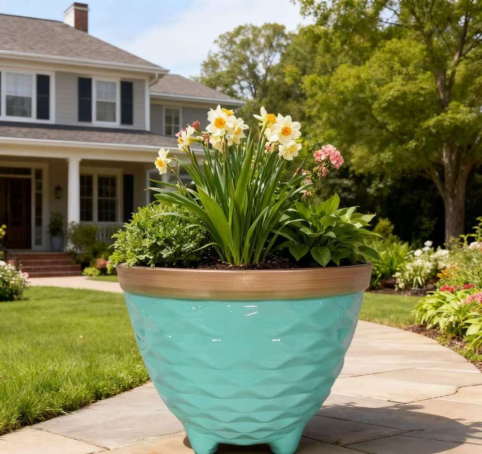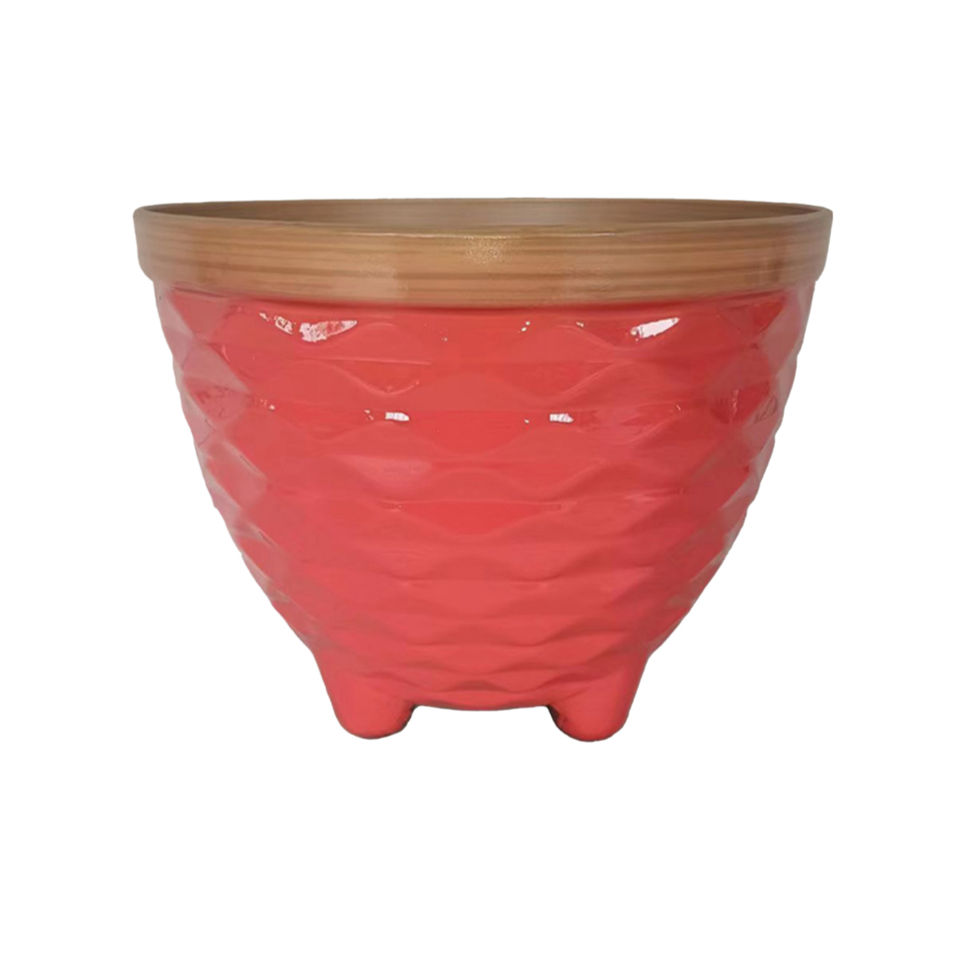 Pot de fleurs en PP complet, motif piedé, brillant et émaillé, léger, durable, multicolore, avec trou de drainage pour la maison et le jardin