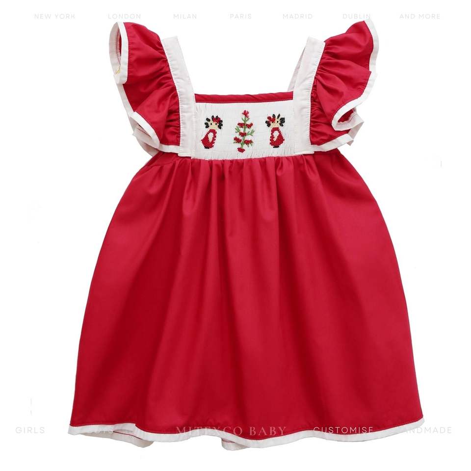 Whole Sale 100% Cotton Bishop Smock Dress for Girls Hand Embroidered Round Neck-OEM Service Available