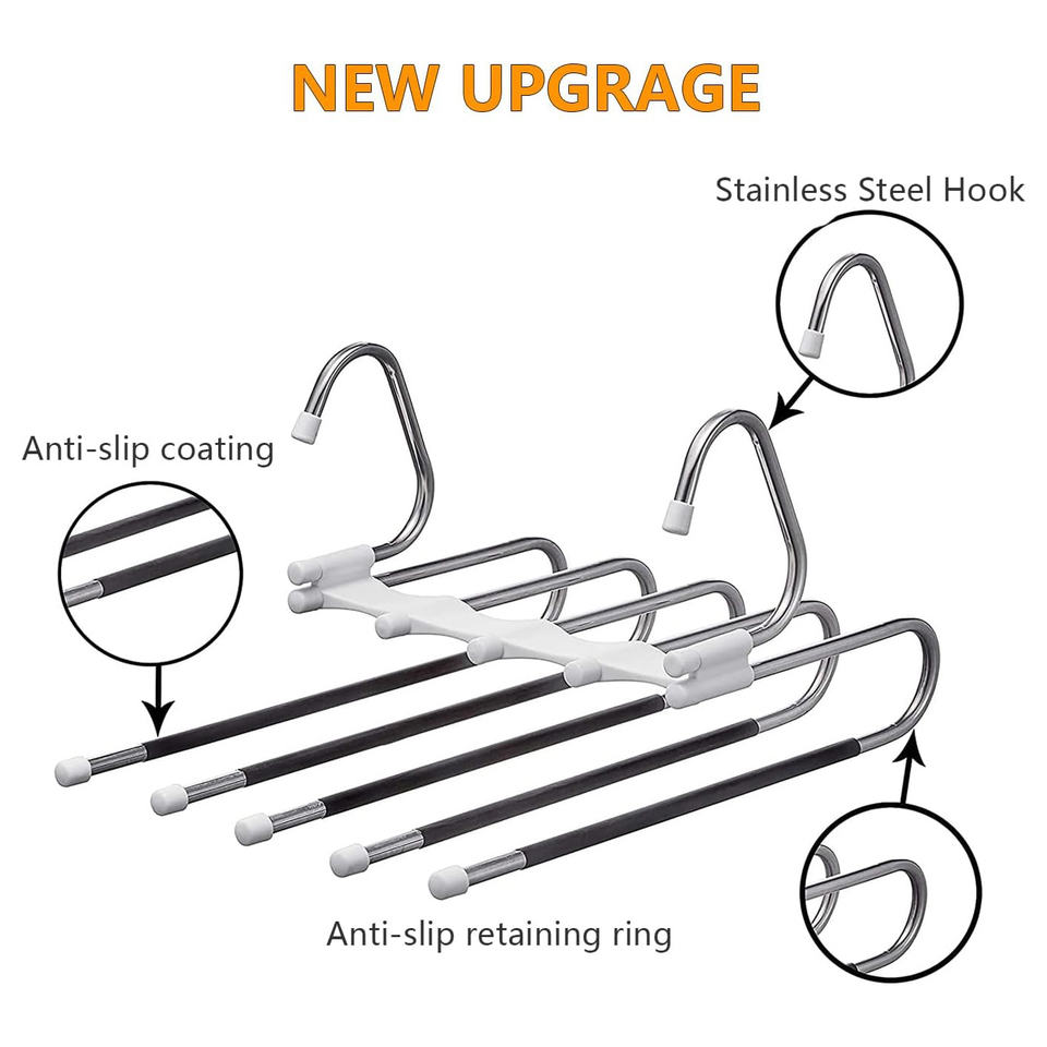 Vente en gros : Cintres magiques multifonctionnels 5-en-1 pour pantalons, lot de 2, pour étagères de penderie