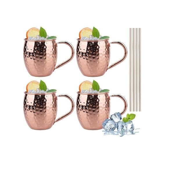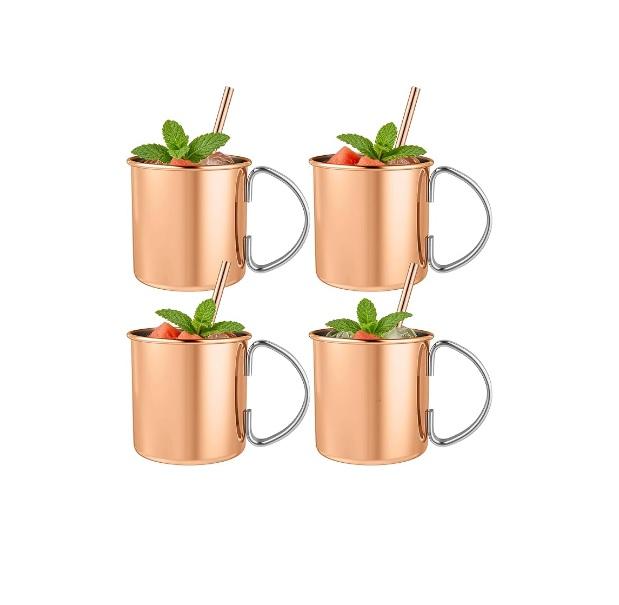 Vente en gros de tasses en cuivre et acier inoxydable avec finition lisse, tasses à boire en cuivre pour accessoires de bar