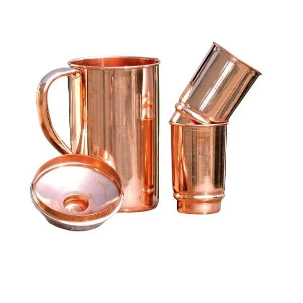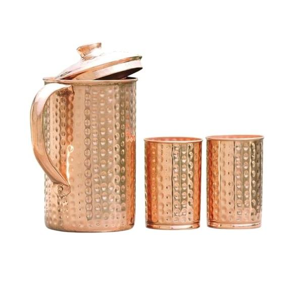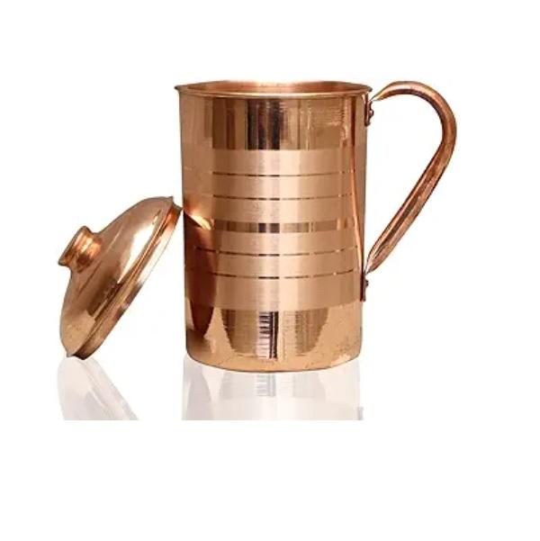 Vente en gros de pichets en cuivre pur pour les bienfaits ayurvédiques, 1,5 litre, pichet à eau en cuivre artisanal avec couvercle assorti
