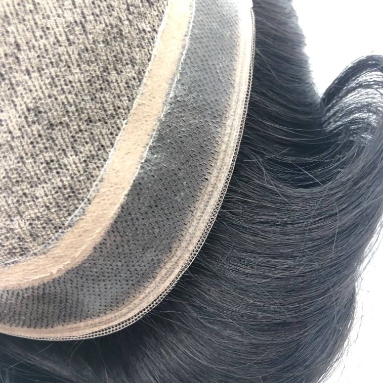 Prothèse capillaire en cheveux humains brésiliens Remy 100% naturels, base en soie, pour hommes, haute qualité, peau ultra-fine, ondulée/lisse