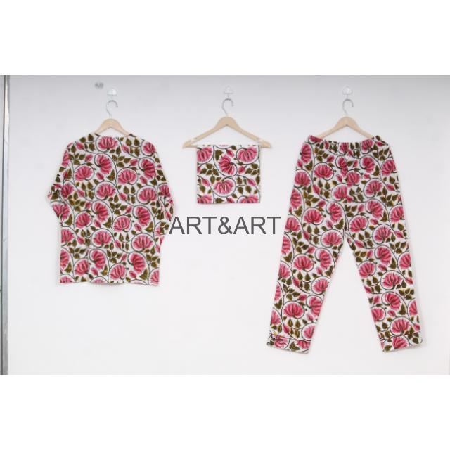 Vente en gros 100% coton ensemble de pyjama court imprimé main bloc vêtements de nuit indiens pour l'été printemps vêtements de nuit costume de nuit pyjama robe