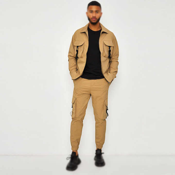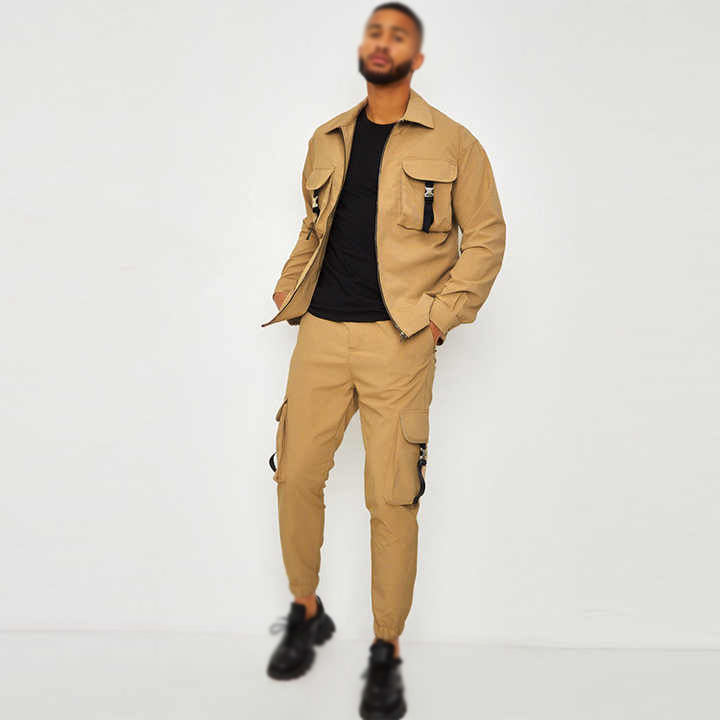 Product name:Multiple Pockets Zip Up Sweatpants Two Piece Set