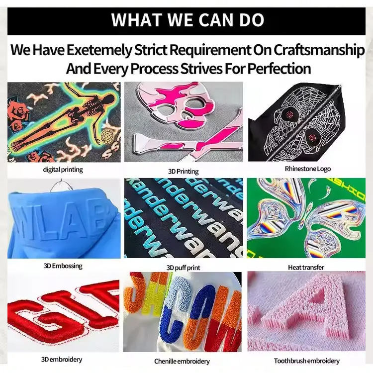 Technics:Embroidered, Printed, Washed, Plain Dyed, Tie Dyed, Flocking, 3D embroidery, Stonewashed