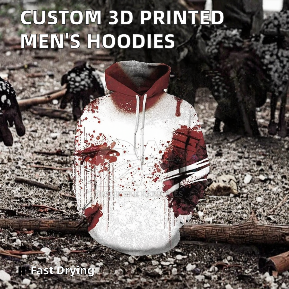 Wholesale 100% Cotton Unisex Pullover Hooded Sweatshirt Custom 3D Printed Solid Pattern for Men Hallowmas Loose Fit