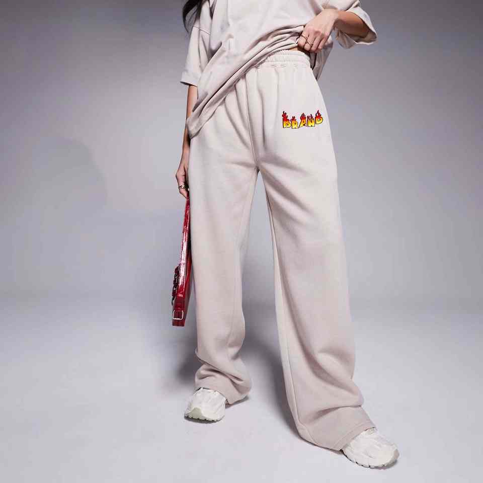 Wholesale 100% Cotton Winter Casual Wear Oversized Sweatpants for Woman Custom Screen Printed Logo Breathable Ladies Trouser