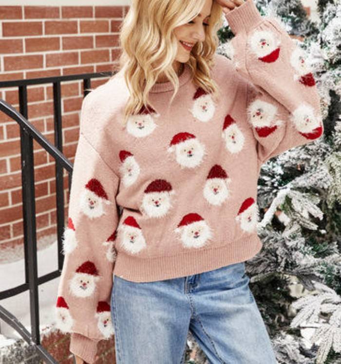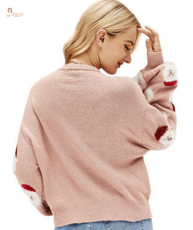 Wholesale 100% Cotton Women's Knitted Pullover Christmas Sweater Casual Solid Pattern Embroidery Button Decor Front Logo Winter