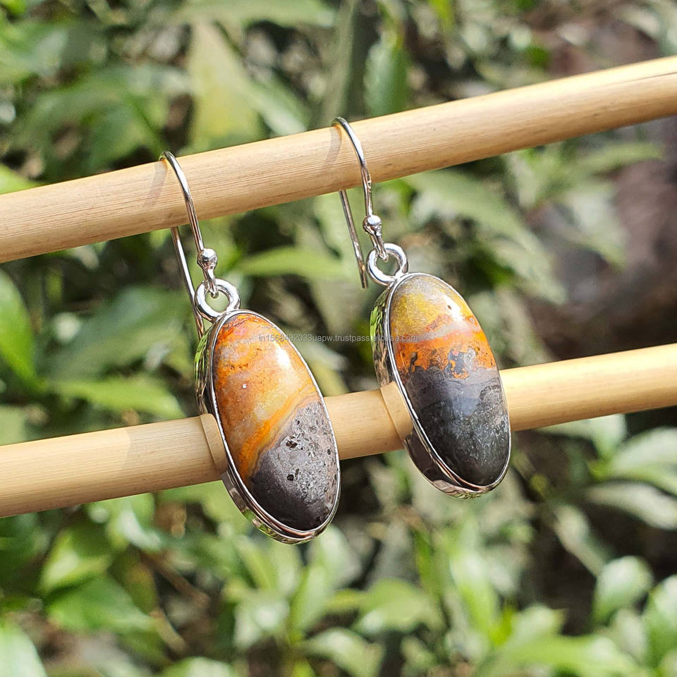 Natural Bumble Bee Jasper 925 Silver Earrings for Women