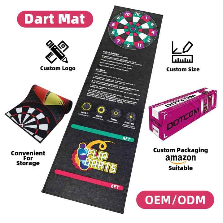 Tapis de fléchettes personnalisé en polyester 100 % avec contour en caoutchouc surélevé pour la protection du sol – Vente en gros