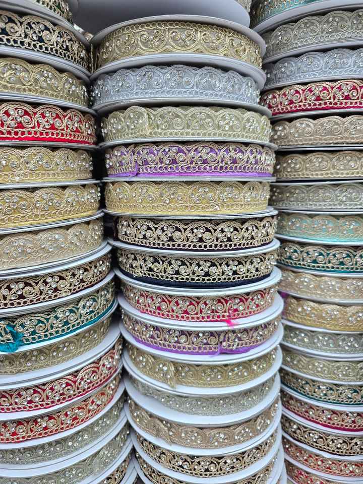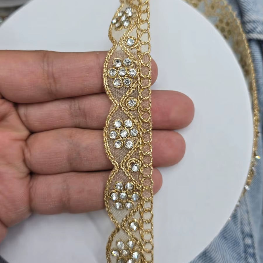 Bordures de dentelle vintage en polyester métallisé 100 % écologique, personnalisables, brodées de perles et de strass, pour vêtements – Vente en gros