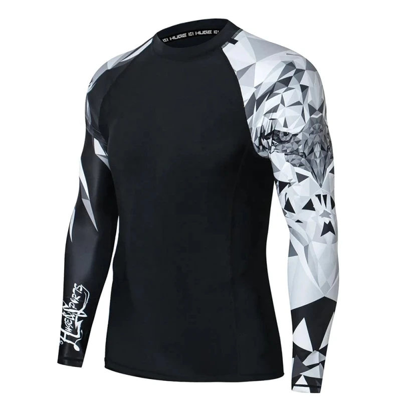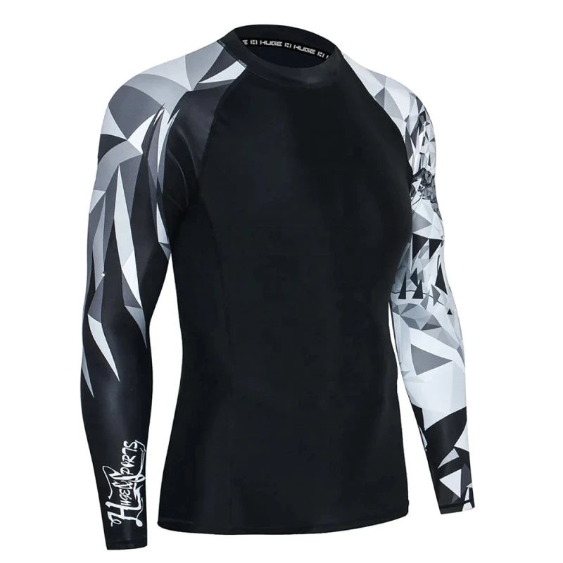 Vente en gros de rashguards pour hommes en polyester 100% sublimé, manches longues, rashguard pour hommes, logo personnalisé avec design OEM