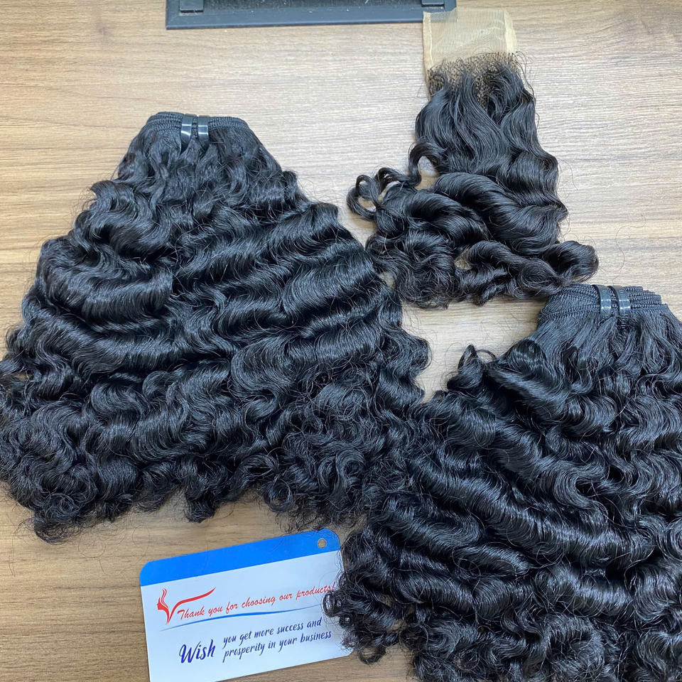 Wholesale 100% Vietnamese Human Hair Fuzz Curly Bundle Weft Natural Black