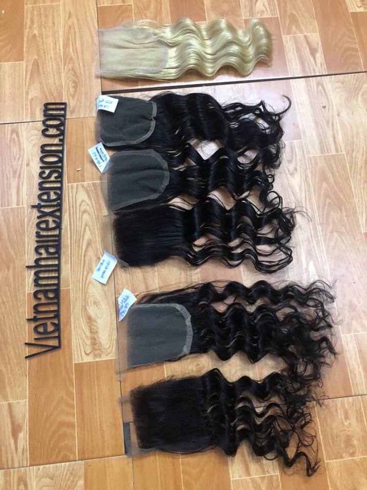 Vente en gros de fermetures frontales 100% cheveux humains vierges Remy, nouées à la main - Style lisse et ondulé, origine Vietnam