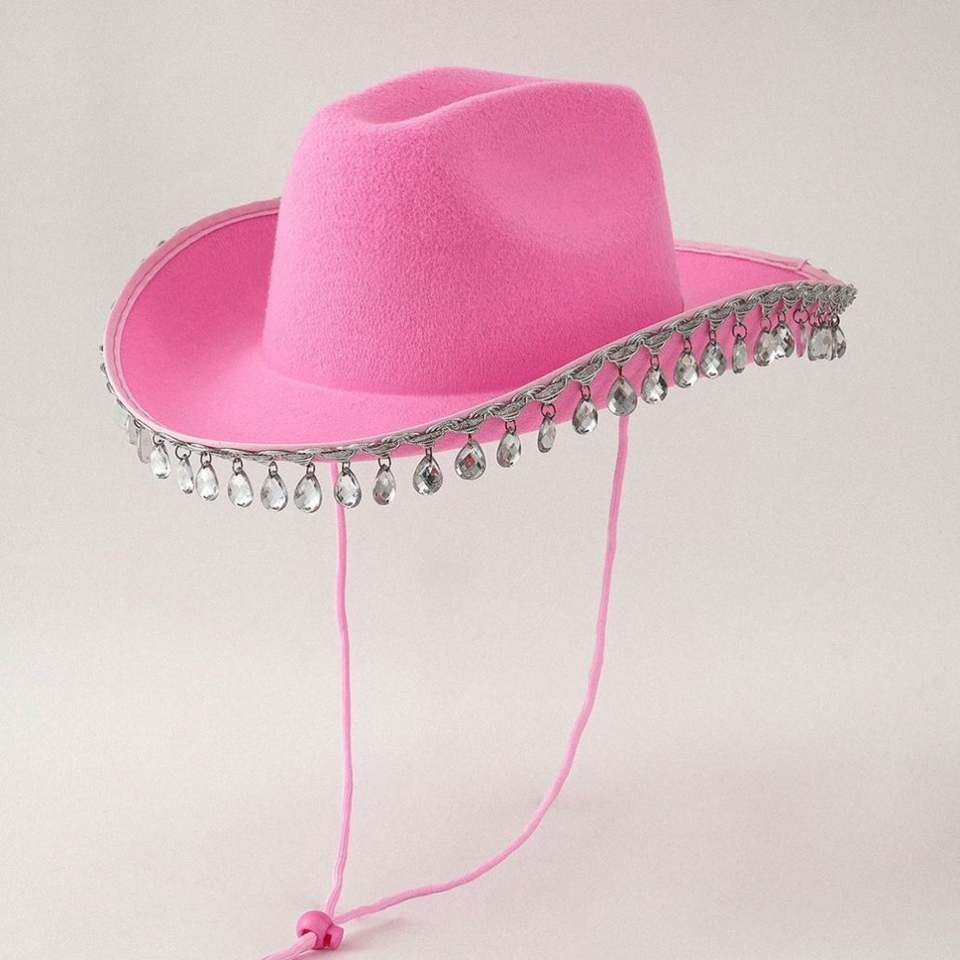 Chapeau de cowboy rose de style western avec pompon en diamant