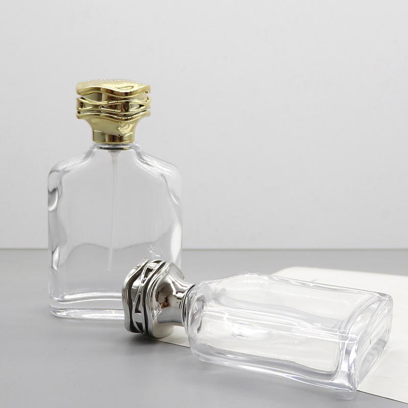Vente en gros de flacons de parfum en verre transparent carrés de 100 ml, flacons cosmétiques vides blancs cristallins avec bouchons à clipser