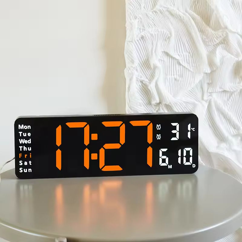 Horloge de table intelligente 13 pouces en gros, design simple pour salon, affichage multifonctionnel de la température, jour et semaine, télécommande