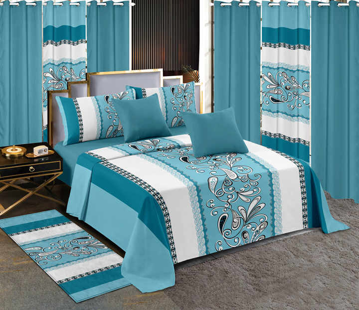 1 drap + 6 rideaux + 2 taies d'oreiller