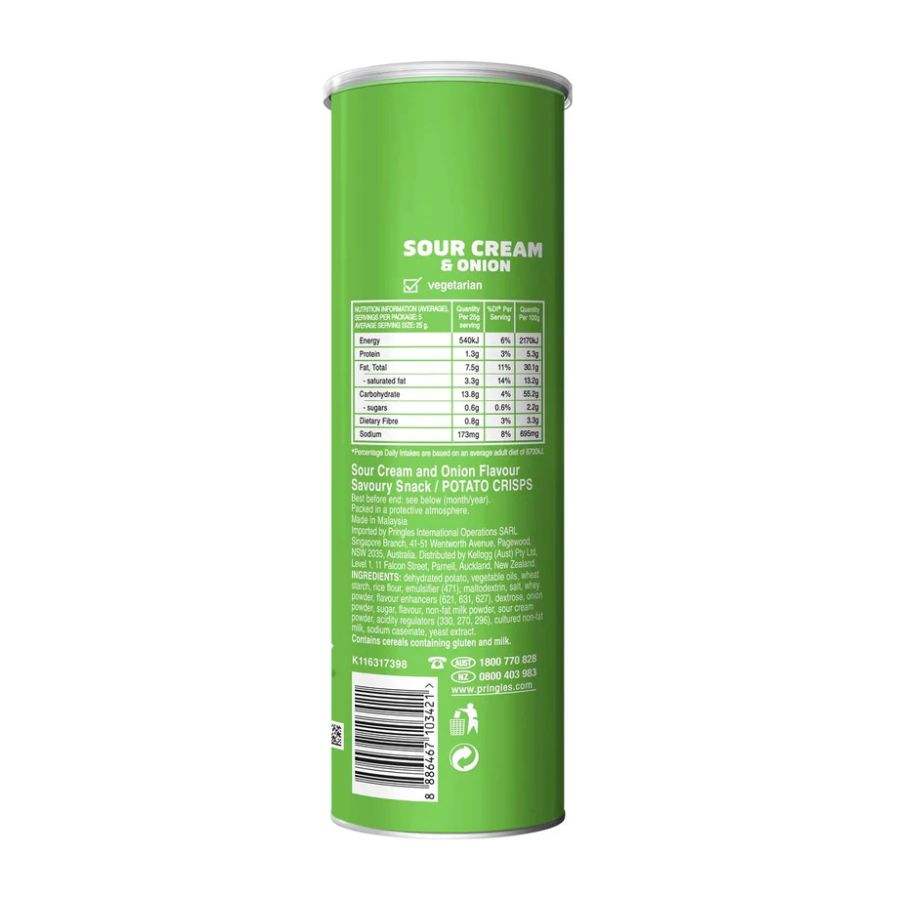 Pringle Potatoes Chips Sour Cream Onion 134gSpecification