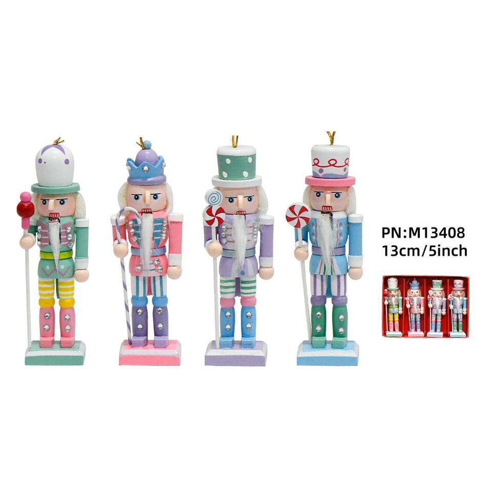 Vente en gros de 4 casse-noisettes macarons de 13 cm, décoration créative pour la maison, soldats en noix, nouveau stock, figurines de Noël 24 ans, jouets